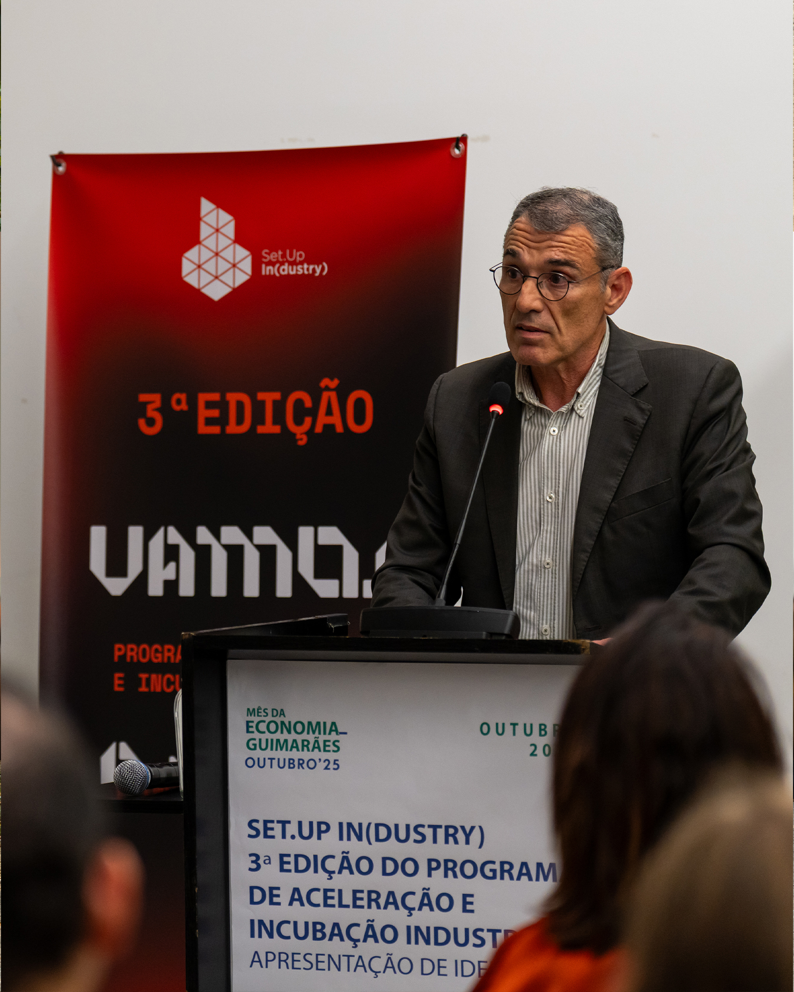 O Município de Guimarães, através da Set.Up Guimarães e do Guimarães Marca, promoveu esta quinta-feira, no CIAJG – Plataforma das Artes e da Criatividade, uma sessão integrada no Mês da Economia dedicada ao arranque da terceira edição do Set.Up IN(dustry), programa de aceleração e incubação industrial que apoia a transformação de ideias inovadoras em negócios com impacto no território. A apresentação do programa foi feita por Marta Mota Prego, Chefe de Divisão de Desenvolvimento Económico, que destacou a importância de unir indústria, investigação e talento empreendedor para fortalecer o ecossistema local.