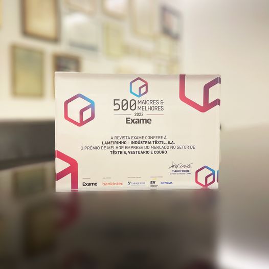 A Lameirinho, empresa Guimarães Marca, foi distinguida pela Revista Exame como a Melhor Empresa do Mercado, no setor de Têxteis, Vestuário e Couros.