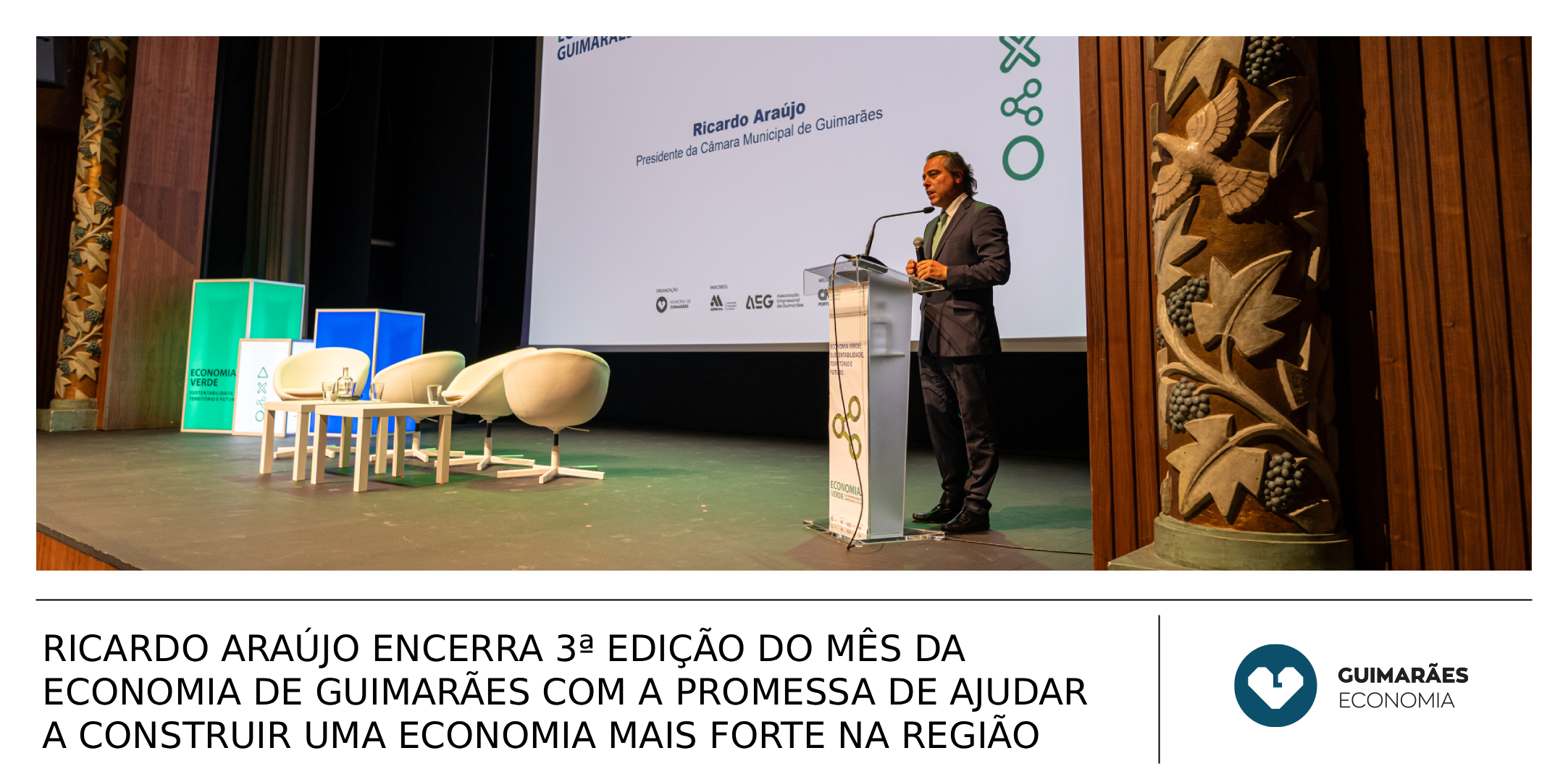 “Contem com o Município de Guimarães para estar ao vosso lado no caminho para tornar a nossa economia cada vez mais forte, diversificada, pujante, dinâmica e que, sobretudo, possa contribuir para que todos consigamos ter melhor qualidade de vida”, foi com estas palavras, dirigidas a empresários e instituições, que Ricardo Araújo, Presidente da Câmara Municipal de Guimarães, encerrou a terceira edição do Mês da Economia, que teve lugar na passada segunda-feira, dia 27, no Teatro Jordão.
