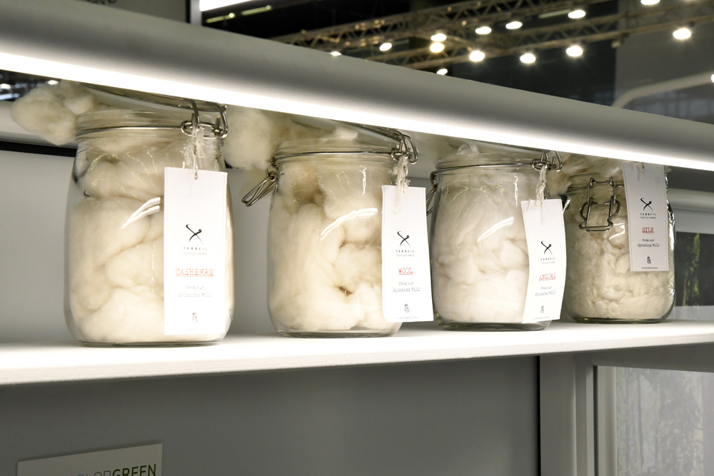 A Tearfil desenvolveu um fio a partir de um biopolÃmero – obtido do caule do milho –, que é depois combinado com outras fibras biodegradáveis, como lã orgânica, cânhamo, linho, algodão orgânico e Refibra (liocel) da Lenzing. «Apesar de ser uma matéria-prima sintética, basicamente um plástico, é 100% biodegradável em compostagem», sublinhou Marla Gonçalves.